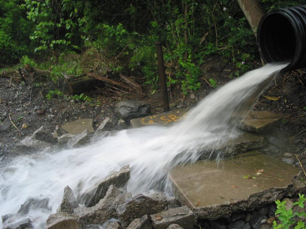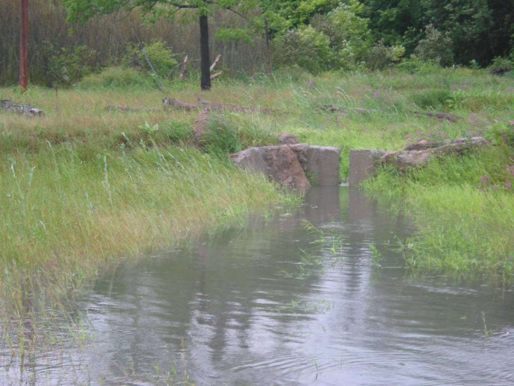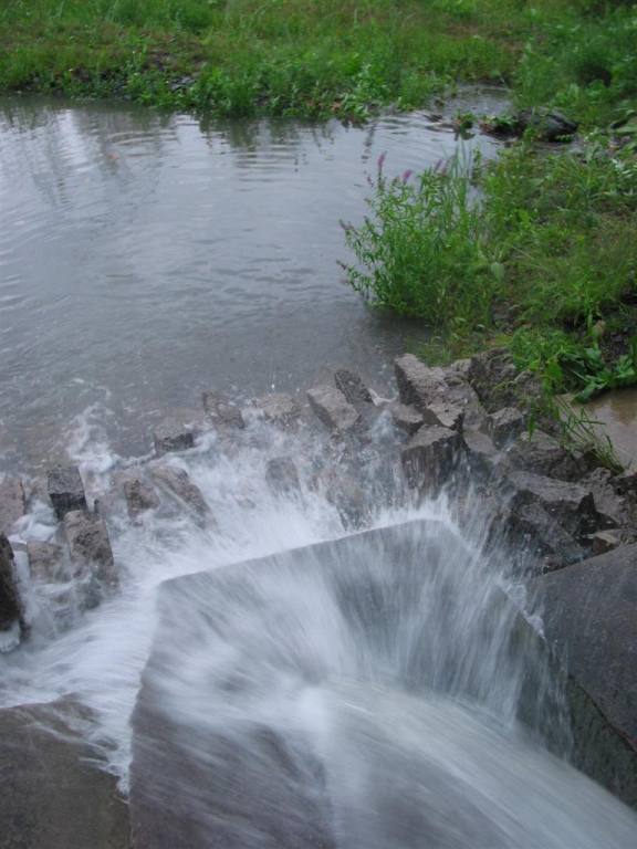 | Outfall during storm | | The Willow Patch collects water | | Outfall after storm |