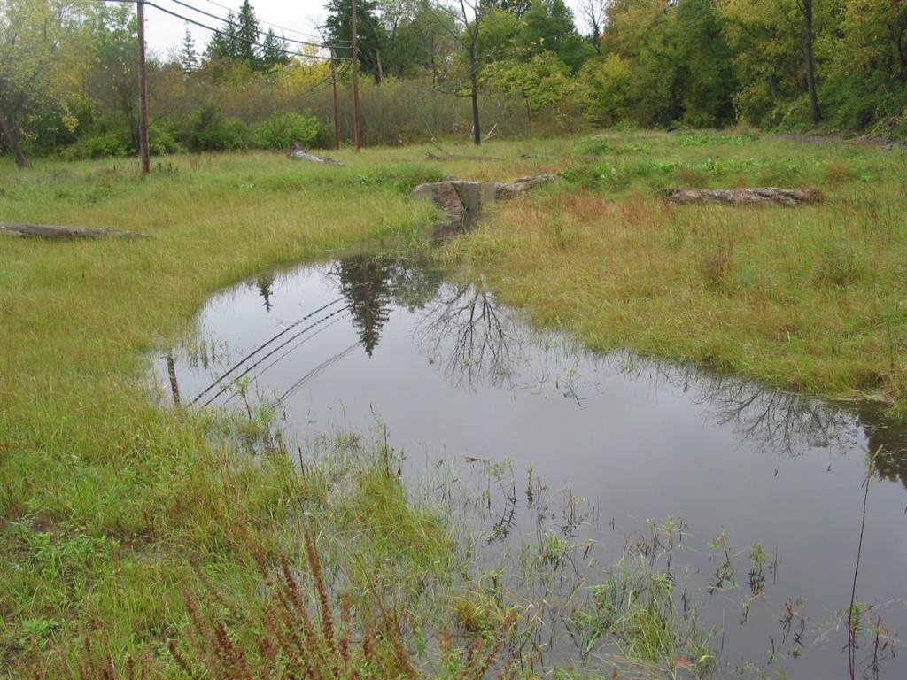| Weirs encourage ponding | | Weir One: Vertical Slab Reused Sidewalks | | Willow (salix purpurea) planted in rows |